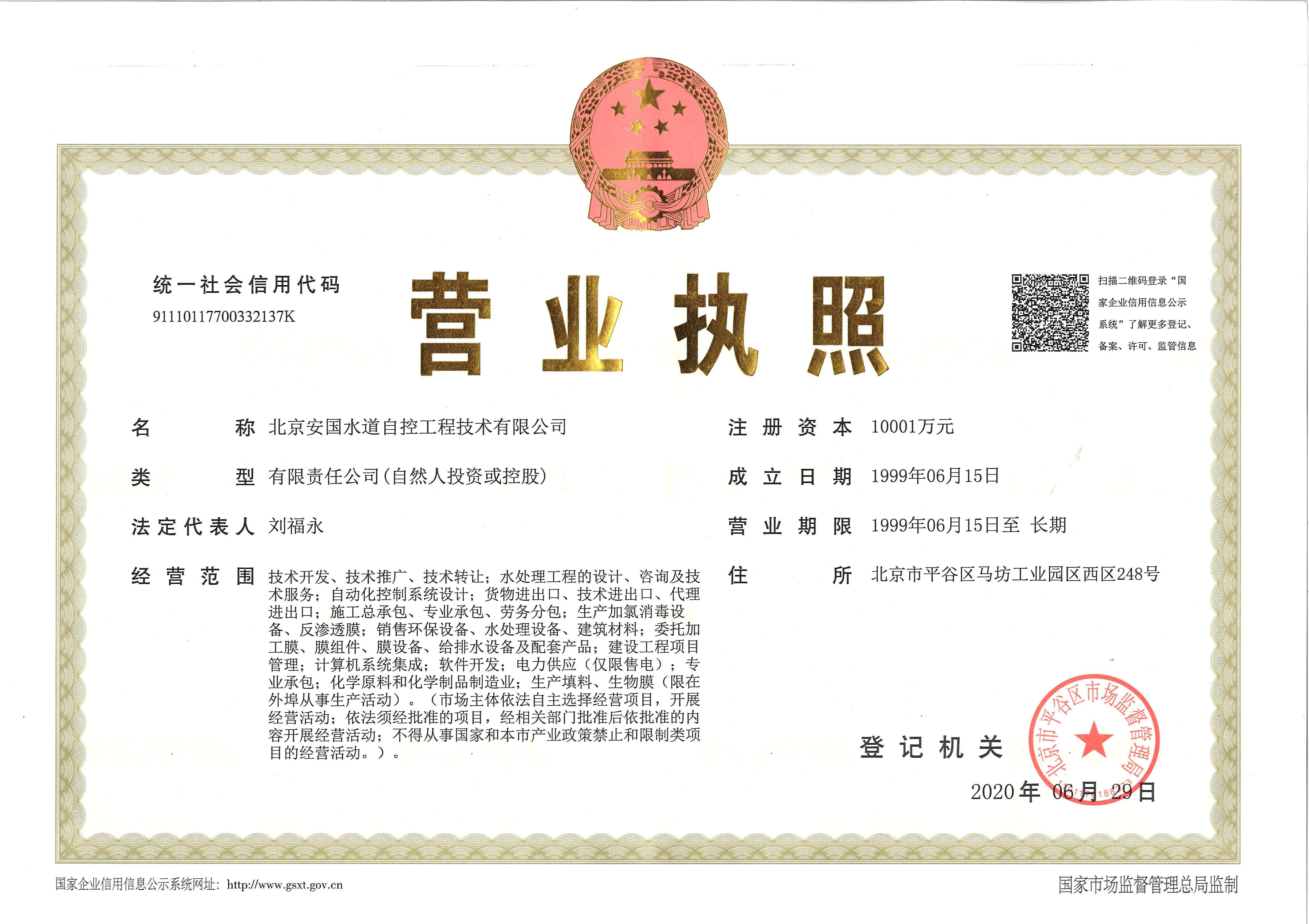 背景安國水道自控工程技術(shù)有限公司是注冊在北京市平谷區(qū)馬坊工業(yè)園區(qū)的高新技術(shù)企業(yè),是中國水處理行業(yè)及自控領(lǐng)域的知名企業(yè),在凈水廠、污水廠、循環(huán)水廠的水處理方面擁有國內(nèi)領(lǐng)先的工藝技術(shù)及調(diào)試經(jīng)驗(yàn)。